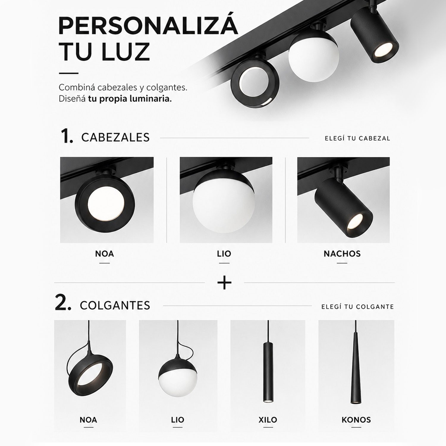 Plafón con 5 cabezales a elección + luz ambiente